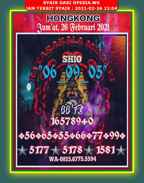 Syair Hongkong Sabtu 6 Februari 2021 Royal Syair From 139.99.27.27